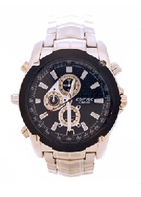 jam tangan (arloji), sehingga sangat cocok digunakan untuk kegiatan memata-mati atau merekam objek tanpa dicurigai. Alat ini memiliki memory internal 4GB sebagai media penyimpan video hasil rekamannya, dan dapat juga berfungsi sebagai flash-disk untuk menyimpan data. Spy Wacth ini menggunakan built-in Recharegeable Lithium battery untuk sumber catu daya cameranya. Hasil rekaman menggunakan format AVI (640x480 pixel), yang dapat langsung dilihat di komputer. Ukuran file hasil rekaman sekitar 500KB/menit. Dimensi : 52 x 52 x 17 mm. |